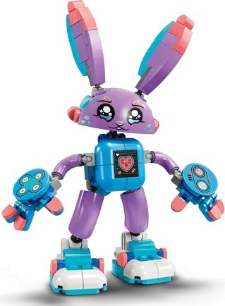 Young dreamers will have fun building the Bunchurro figure, a cool new version of Bunchu the Bunny that has a video game screen on its belly and wears gaming controller gloves and sneakers, before discovering 2 ways to transform it. They can accessorize the rabbit model with a skateboard and boosters or an awesome jetpack. The toy rabbit is highly posable in all modes, and the action is brought to life by an Izzie minifigure, who attaches to the back of Bunchurro to encourage imaginative role play.
