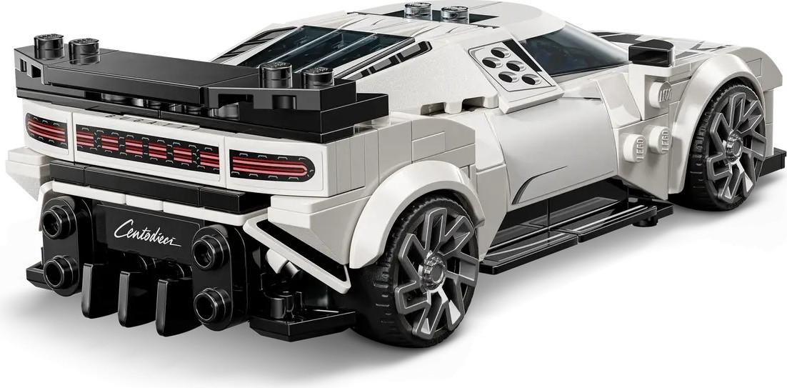 The Bugatti LEGO® car model includes the Centodieci hyper sports car’s 5 round air-intake features on the side, its unique rims, headlights, horseshoe radiator grille, overhanging rear wing and 4 rear tailpipes. The LEGO car set also comes with a Bugatti driver minifigure for kids to place behind the wheel and role-play action.