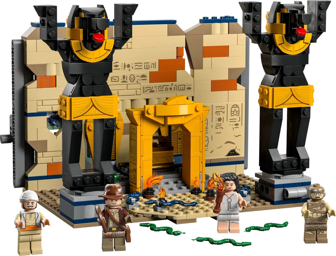 - Neli minifiguuri – Indiana Jones™ oma kuulsa kaabu ja lassoga, Marion Ravenwood™, Sallah™ ning muumia. Samuti on komplektis palju madusid: põrandal ja läbi seina lükkamiseks