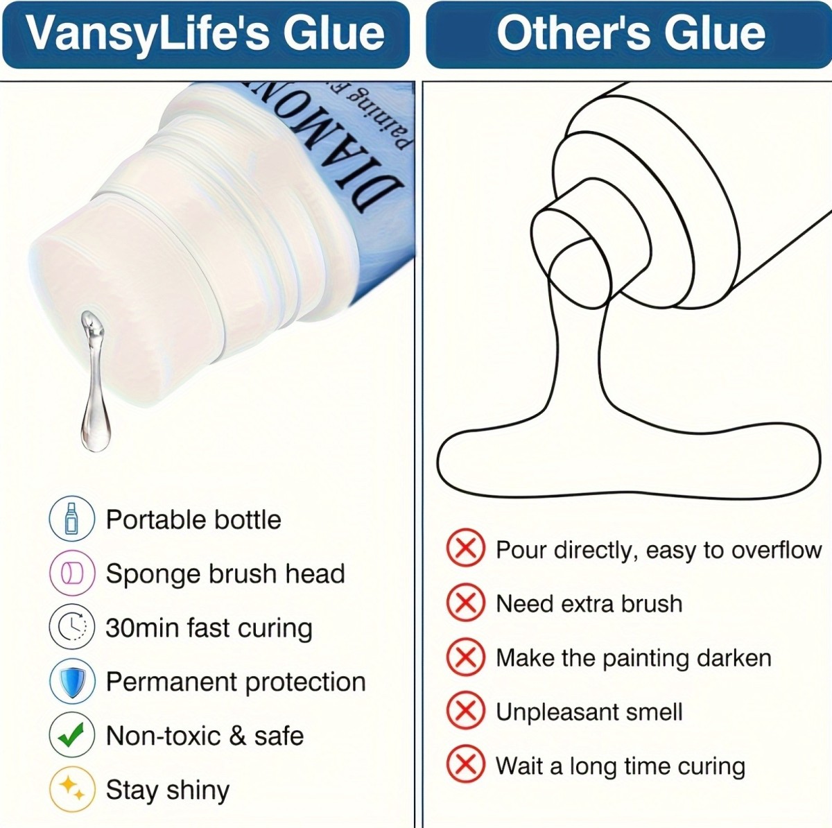 Lakas tinka tiek deimantinėms mozaikoms, tiek dėlionėms ir kitiems rankdarbiams. Greitai džiūstanti formulė leidžia baigtą darbą netrukus naudoti. Sudėtis yra netoksiška ir tinkama naudoti patalpose.