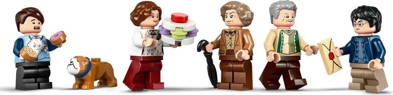 - 5 „LEGO® Harry Potter™“ minifigūrėlės – Mardžė Dursli, Vernonas Durslis, Petunija Dursli, Dudlis Durslis, Haris Poteris, taip pat išsipūtusios tetos Mardžės ir šuns Žudiko figūrėlės