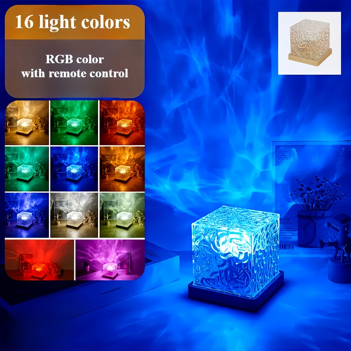 Ūdens viļņu efekta nakts lampa rada maģisku noskaņu jebkurā telpā. Ar 16 RGB krāsām, rotējošu gaismas efektu un ērtu tālvadības pulti jūs varat pielāgot apgaismojumu savai noskaņai – nomierinoši zilu, siltu oranžu vai spilgti baltu. Lampa apvieno estētiku un funkcionalitāti, nodrošinot mierīgu gaismu guļamistabā, viesistabā vai vannasistabā. Ūdens viļņu un liesmas efekti piešķir gaismai dzīvīgu un relaksējošu raksturu, savukārt skārienvadība un automātiskā rotācija padara to viegli lietojamu. Energoefektīvā LED gaisma nodrošina ilgu kalpošanas laiku.