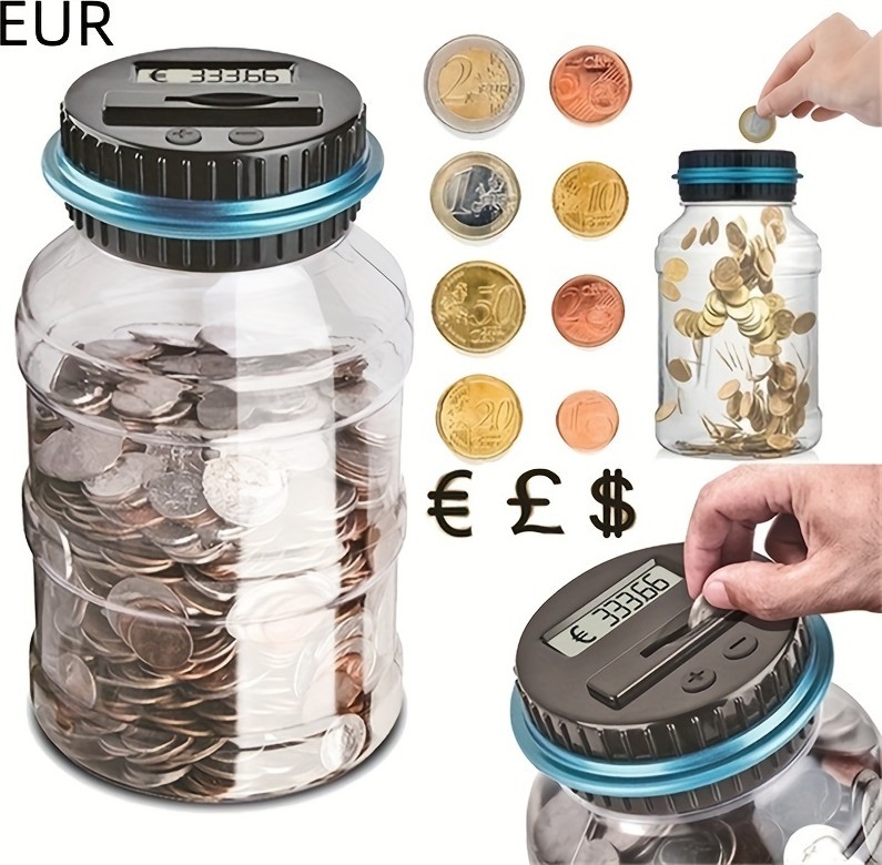 Digitālā monētu skaitītāja krājkase ir praktisks un jautrs veids, kā sekot līdzi saviem ietaupījumiem. Caurspīdīgā burka un skaidrais LCD ekrāns ļauj automātiski saskaitīt katru iemesto monētu un redzēt kopējo summu reāllaikā. Kad ekrāns īslaicīgi izslēdzas, skaitīšanas dati saglabājas – tiek taupīta enerģija, nezaudējot informāciju. Lieliski piemērota gan bērniem, gan pieaugušajiem, kuri vēlas padarīt naudas krāšanu vienkāršu un iedvesmojošu.