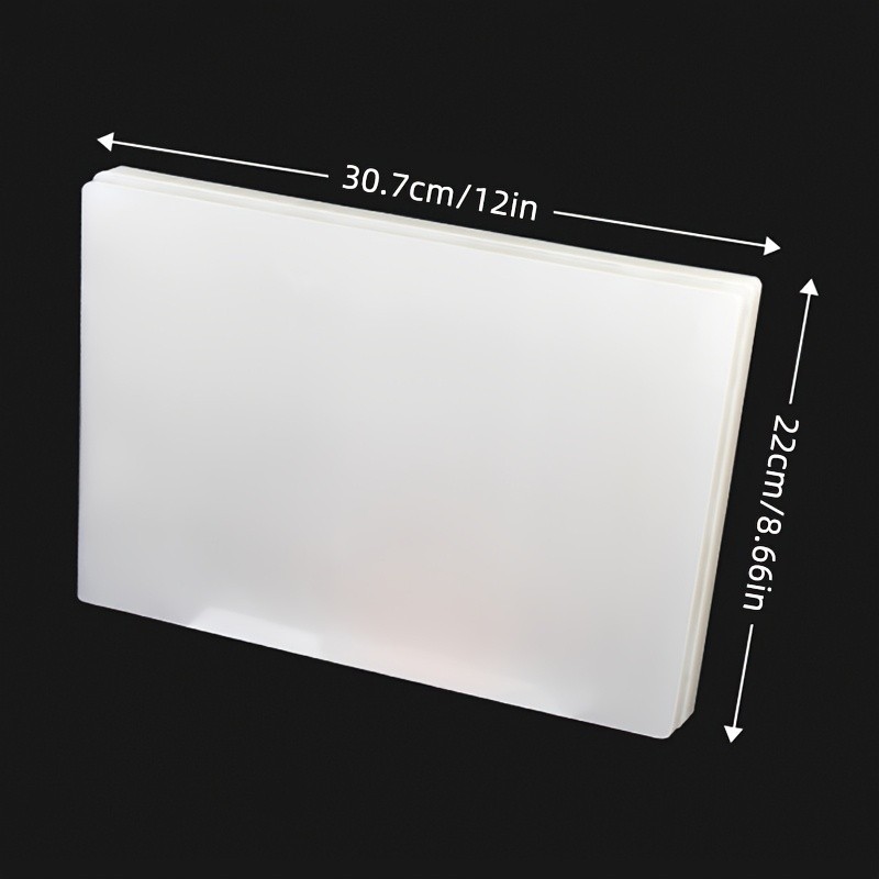 Kabatiņu izmēri (30,7 × 22 cm) atbilst A4 formātam, nodrošinot saderību ar lielāko daļu standarta laminatoru. Elastīgais materiāls ļauj kabatiņas saliekt bez bojājumiem, padarot tās piemērotas dokumentiem, fotogrāfijām, instrukcijām un citiem bieži lietotiem materiāliem.