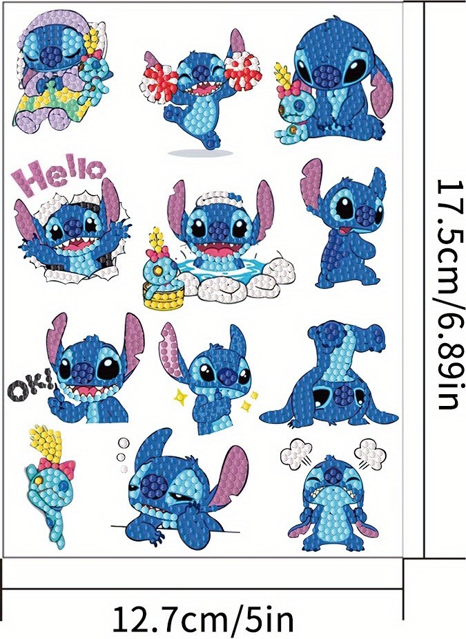 Dimanta mozaīkas uzlīmju komplekts “Stitch” piedāvā radošu un aizraujošu nodarbi gan bērniem, gan pieaugušajiem. Komplektā ir divpadsmit krāsaini motīvi, kurus var dekorēt ar apaļiem dimanta kristāliņiem. Pabeigtās uzlīmes izskatās spilgtas un detalizētas, attēlojot dažādas Stitch pozas un emocijas, kas piešķir darināšanai rotaļīgu noskaņu.