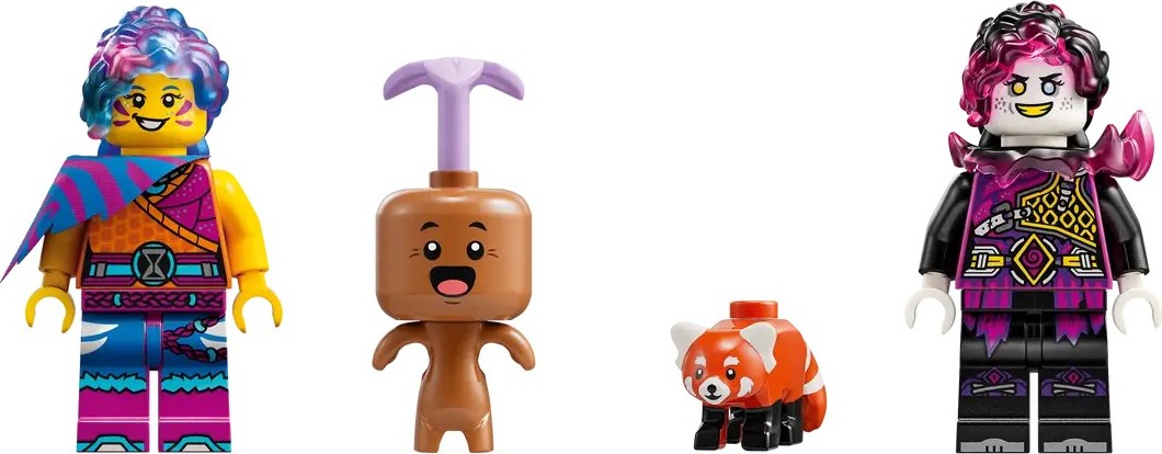 Šo LEGO DREAMZzz komplektu iedzīvina 2 minifigūras: varone Izzie un viņas ļaunā līdziniece Dizzy, kā arī sapņu būtnes figūra un mini sarkanās pandas figūra. Tas ietver arī būvēšanas instrukcijas stāstu formā, kas ļauj bērniem nodoties piedzīvojumiem bezgalīgās, iztēli raisošās rotaļās.